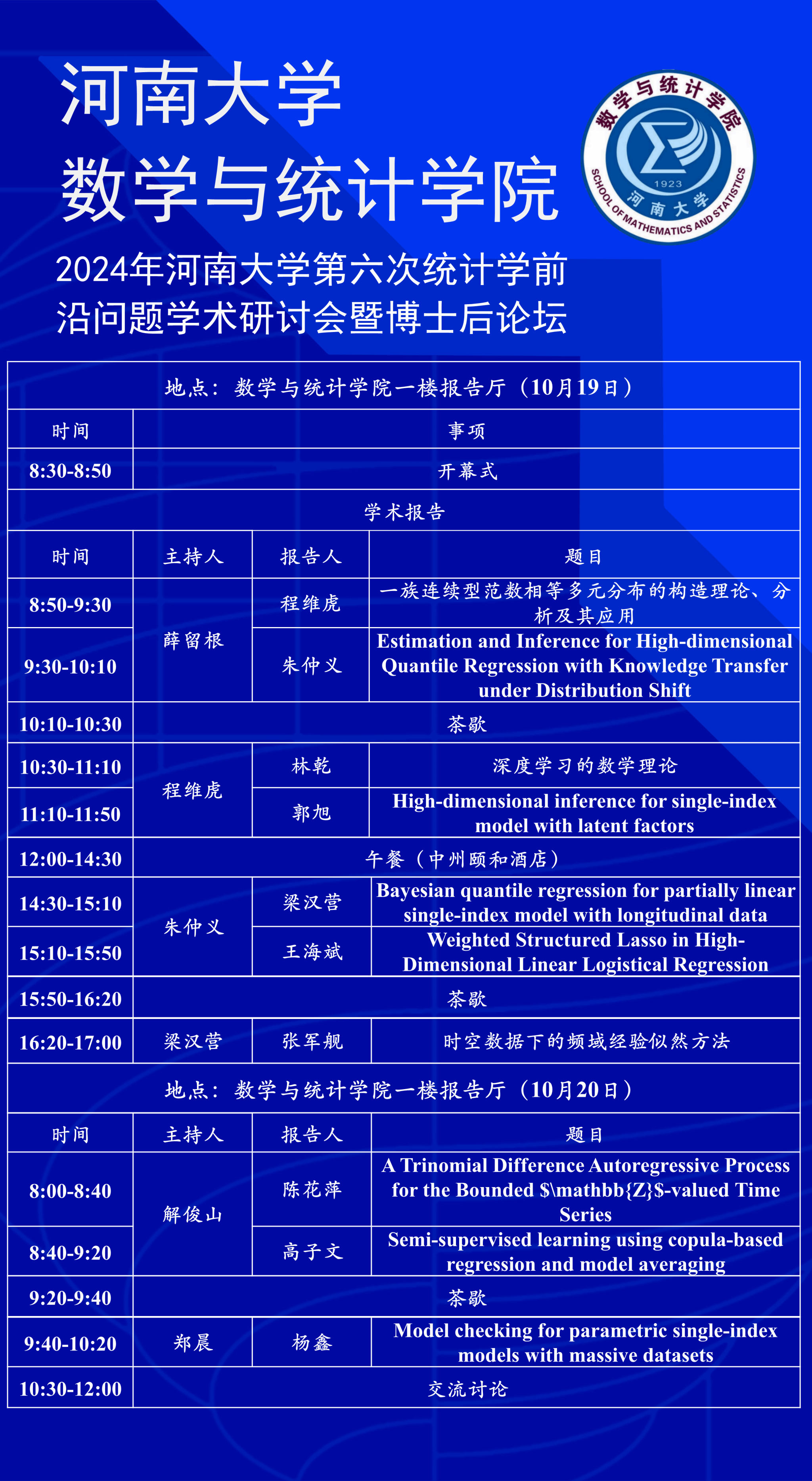 2024年蜜桃视频 第六次统计学前沿问题学术研讨会暨博士后论坛