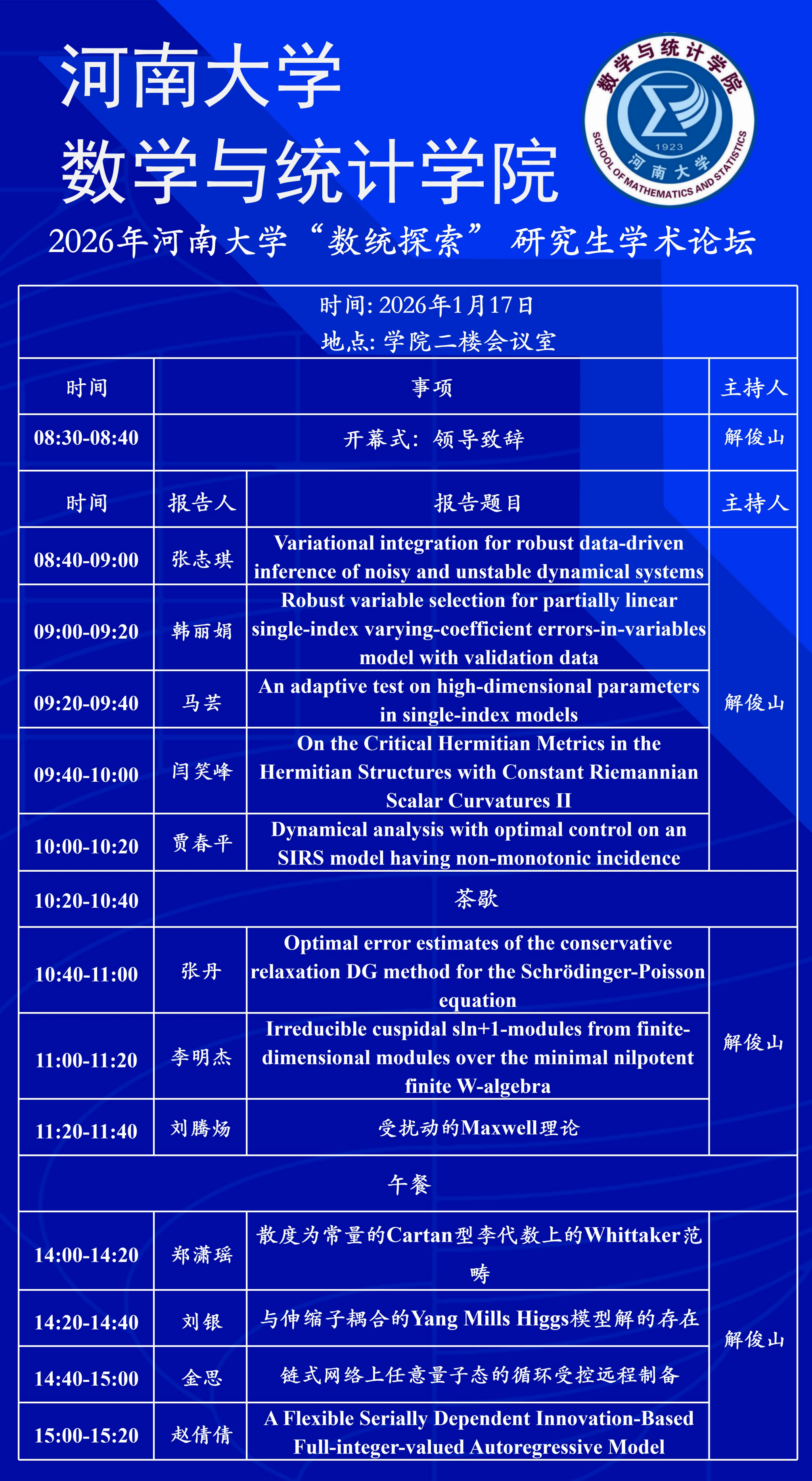 2026年蜜桃视频 “数统探索” 研究生学术论坛
