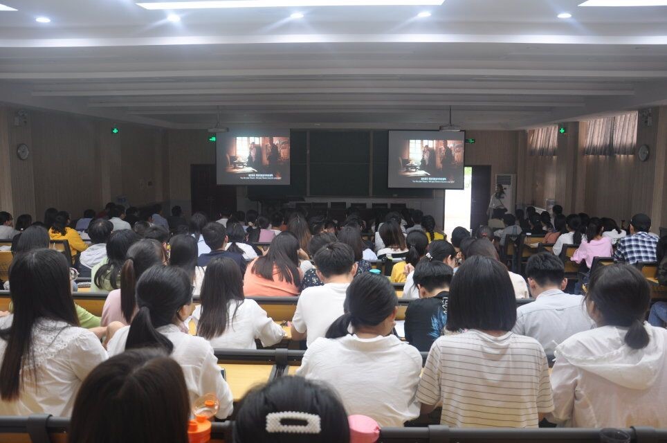 于南阶梯教室组织全体师生党员和入党积极分子观看山西首部脱贫攻坚题材电影《一个不落》。