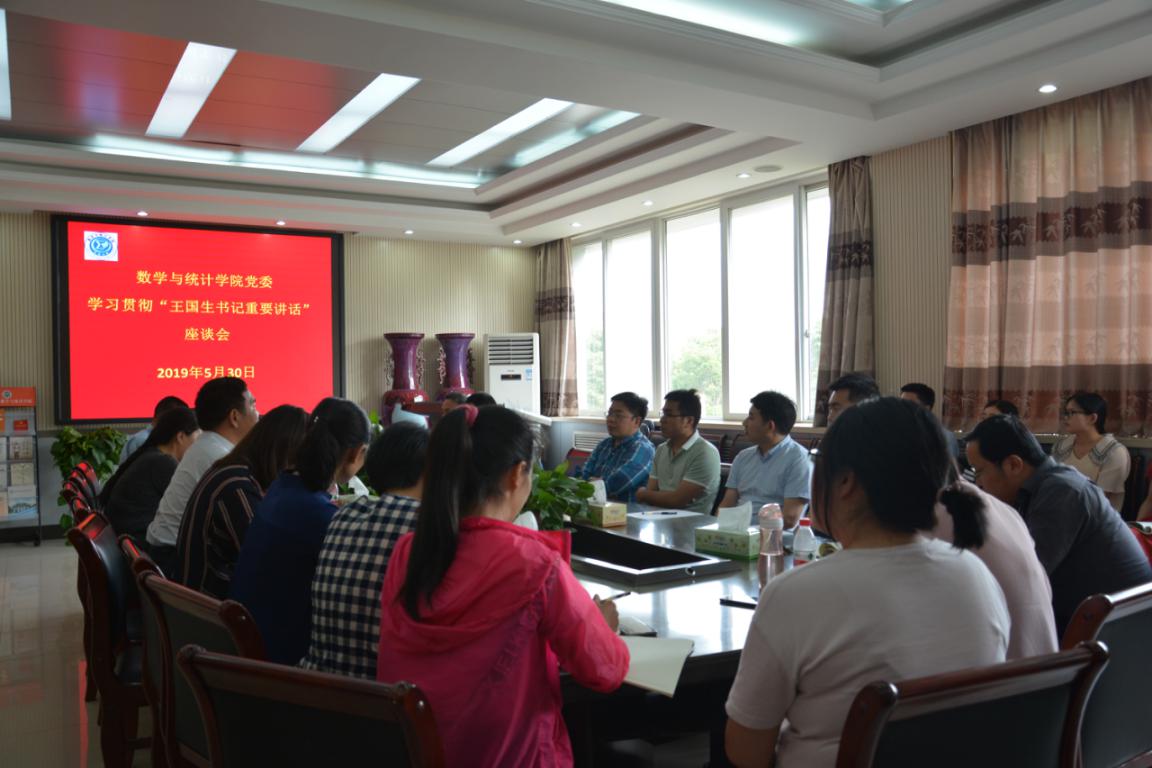 对我校师生是极大的鼓舞,学校目前面临重要发展机遇。全院师生要不忘初心,在做好专业的同时加强自身修养,围绕立德树人这一根本目标为学校“双一流”建设作出应有的贡献。副院长王波表示,学校的发展离不开每一位教师的共同努力。作为一线教师,教书育人是天职,只有大家拧成一股绳,心往一处想、劲往一处使,学院的明天才能更美好!公共数学教学部党支部书记范利萍表示,从个人角度而言,作为教师应该认真上好每一堂课,努力培养学生成长成才,同时作为党支部书记会努力做好支部建设工作,助力学院党建高质量发展,为学校的“双一流”建设添砖加瓦。信息与计算科学系主任葛志昊教授用“天时、地利、人和”三个词来概括学校目前面临的重大机遇,希望学校全体教职工生抢抓难得的发展机遇,“撸起袖子加油干”!院学生会主席、2016级学生杨彬分享了入学三年的感受,作为土生土长的开封人,他希望自己能够尽己所能学有所成,将来可有机会为家乡和母校奉献自己的绵薄之力。大家各抒己见,纷纷表示绝不辜负王国生书记和中原父老的希望要求,深刻认识“双一流”建设任务的重要性、长期性、艰巨性和复杂性,做好爬坡过坎、砥砺前行的准备,继承和发扬流亡办学精神,弘扬光荣传统,以史为鉴,以史励志,勇于担当,主动作为,不忘初心、牢记使命,踏踏实实做好本职工作,从小目标到大目标一步步发展,以优异的“双一流”建设成就来告慰我们的先贤和亿万中原父老乡亲!