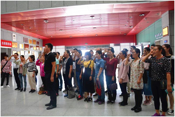 在吉鸿昌将军浮雕前,面对鲜红的党旗,全体党员庄严地举起右手,再次齐声重温入党誓词,立志不忘初心、发奋努力,为学校增光,为学院添彩。