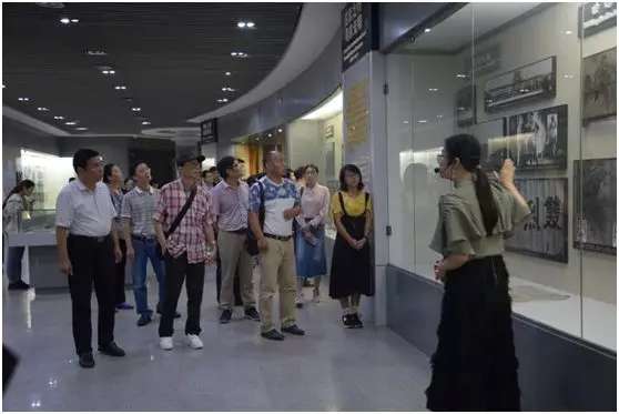 上午十时许,冒着淅淅沥沥的秋雨,一行人抵达扶沟县,受到了县委宣传部、县文明办、党史办等相关领导的热烈欢迎。在县委宣传部副部长宋斌等同志的陪同下,大家怀着崇敬的心情,来到位于县城鸿昌大道东段伟大的抗日民族英雄、优秀共产党员吉鸿昌烈士纪念馆,馆前广场上,威武屹立着高约8米的吉鸿昌将军戎装青铜塑像,由江泽民同志亲手题写的“吉鸿昌将军纪念馆”首先映入眼帘。步入展厅,在讲解员的引导下,大家认真参观了吉鸿昌将军生前相关物品、图片及资料等展品,追忆吉鸿昌将军自强自立的少年时代及壮志投军、郾城从戎而后参加北伐的青年抱负。通过珍贵的文字与承载了历史记忆的文物,生动再现了吉鸿昌将军的革命历程、可歌可泣的英勇事迹与光辉业绩。将军“主政宁夏,关注民生”、“创办义学,培养英才”、“苏区之行,寻求光明”的事迹, “恨不抗日死,留作今日羞,国破尚如此,我何惜此头!”的就义诗无不体现英雄的爱国精神,深深地感染和激励着我们每一个参观者。
