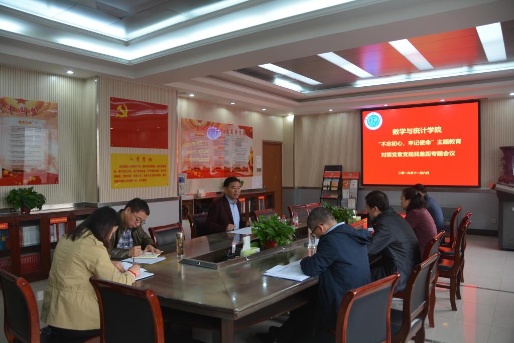 在二楼党员活动室召开对照党章党规找差距专题会议,学院党委委员及全体班子成员参加,会议由党委书记史富强主持。
