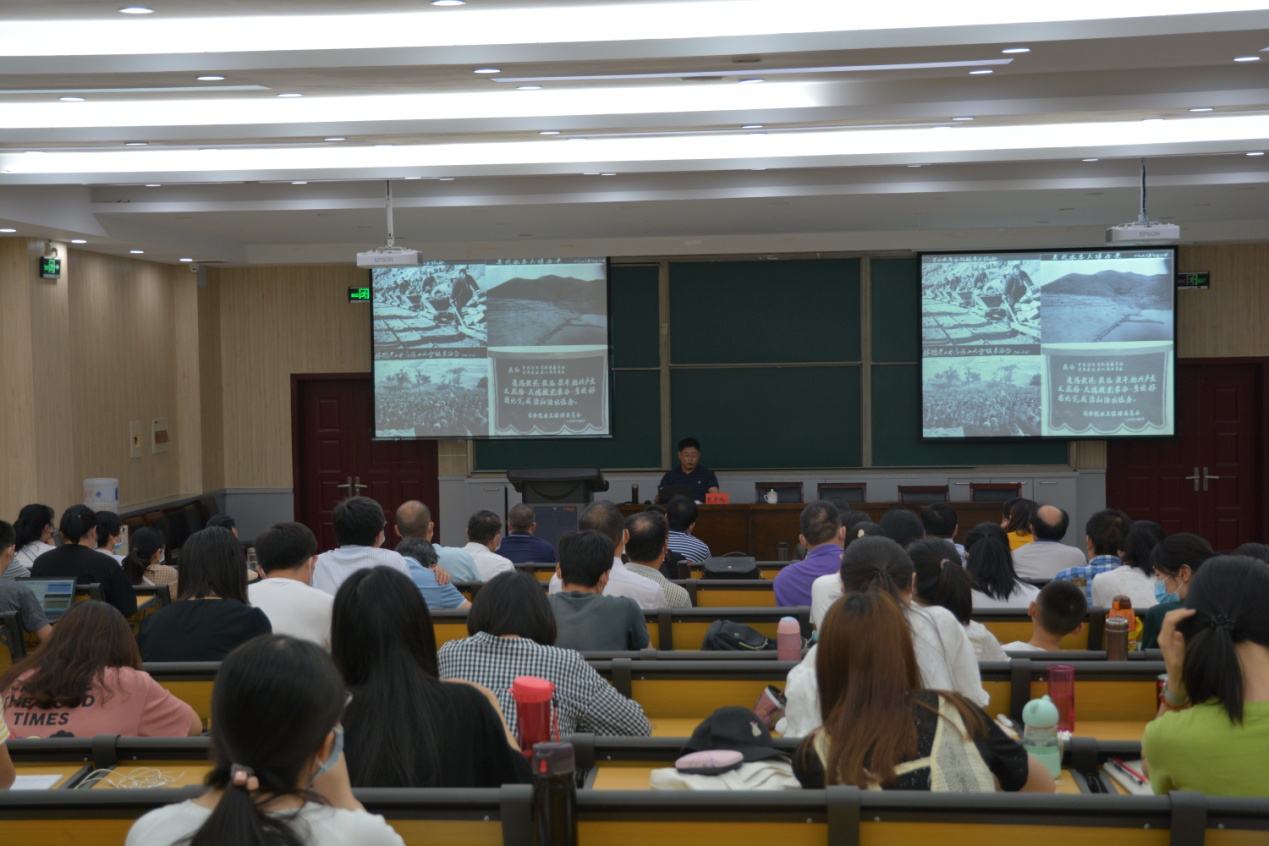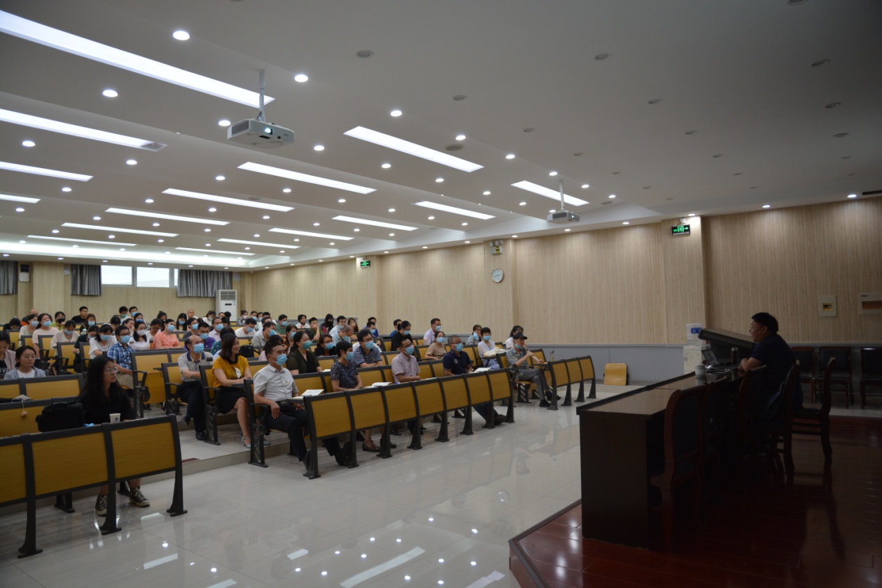 党委在二楼南阶梯教室开展“牢记初心使命,争当出彩先锋”主题党日活动,邀请中共河南省委党校党史教研部曹彦鹏博士做了题为《红旗渠的修建及其历史启示》的报告。学院领导班子成员、全体教职工党员、研究生党员、入党积极分子及党外人士代表一百余人参加了报告会,报告会由院党委书记史富强主持。