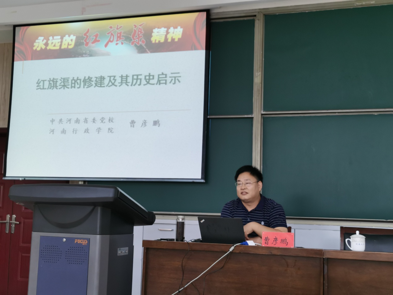 曹彦鹏博士曾担任红旗渠干部学院副院长,多年来一直致力于红旗渠精神的研究和传播,在该领域久负盛名。他热爱红旗渠,研究红旗渠,在红旗渠干部学院工作期间,为讲好红旗渠精神这门课,他对红旗渠的修建历程和红旗渠精神的孕育形成进行了全面系统、深入细致挖掘、整理和研究,相关课程曾获全省理论课第一名。本次报告主要讲述了红旗渠修建的历史背景,伟大实践铸就精神,红旗渠精神的历史启示等三个方面。