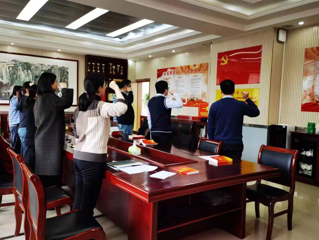 会上,全体成员首先重温了入党誓词,面对鲜红的党旗,领誓人解俊山引领支部全体党员一起高举右手,再次庄严宣誓:“我志愿加入中国共产党,……,随时准备为党和人民牺牲一切,永不叛党,宣誓人……”,通过入党誓词宣誓活动进一步增强了党员意识,坚定了理想信念。