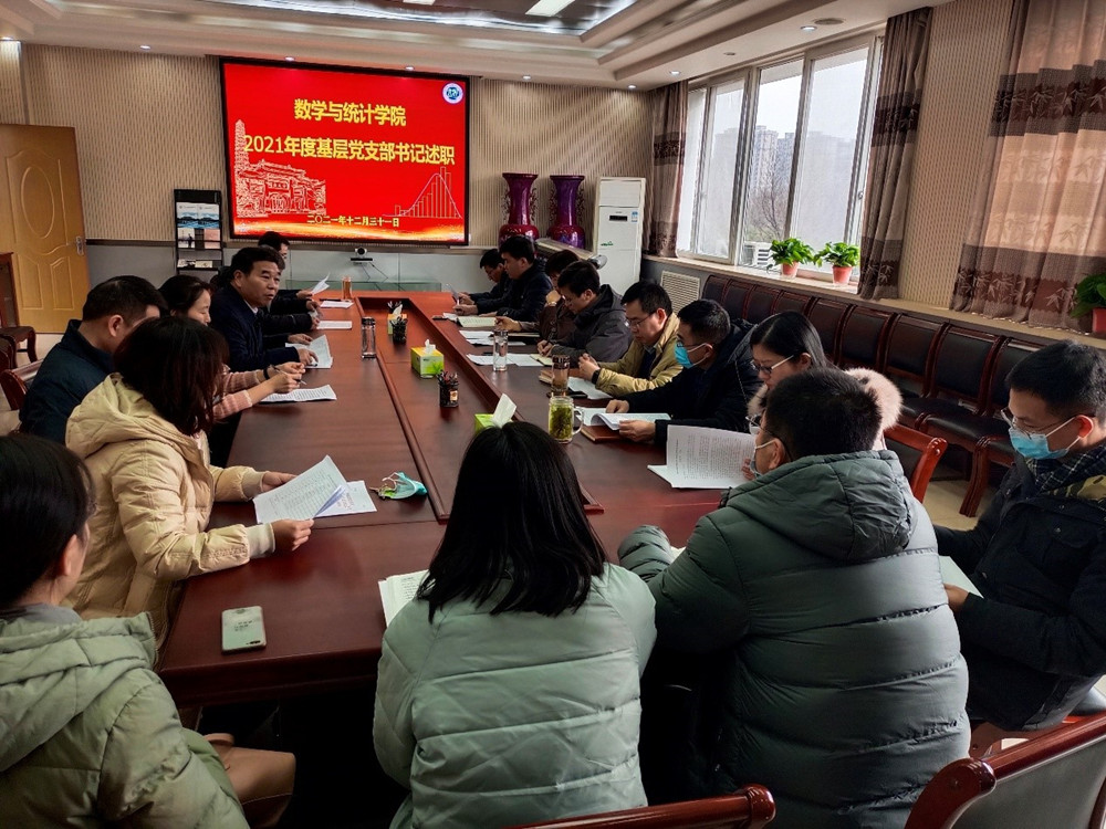 史富强首先介绍了本年度述职评议会的准备基本情况和考核要求。七位教工党支部书记和五位学生党支部书记围绕各支部基本情况、履行党建责任情况、抓支部党建的主要做法、成效以及亮点、党建工作存在的突出问题及下一步改进措施等方面进行述职汇报。应用数学系党支部、数学教育系党支部等教工支部将支部建设活动同系部专业特点相结合,组织开展一系列活动,做到相互促进。各学生党支部书记围绕学生党员培养教育,开展特色党日活动,积极做好学生们的价值引领。每位支部书记述职结束后,学院党委委员对所联系的党支部工作进行点评,在肯定成绩的同时,深入剖析存在的问题与原因,并提出2022年的改进措施和工作思路。理论知识的学习是提高政治素养的基础,支部活动则能促进理论学习升华、走心、走实。支部书记对在疫情防控常态化下,如何开展丰富多彩、喜闻乐见的支部活动来提高广大党员学习积极性以及增强支部凝聚力、向心力进行了讨论,并对学院的党建工作提出了中肯的意见建议。