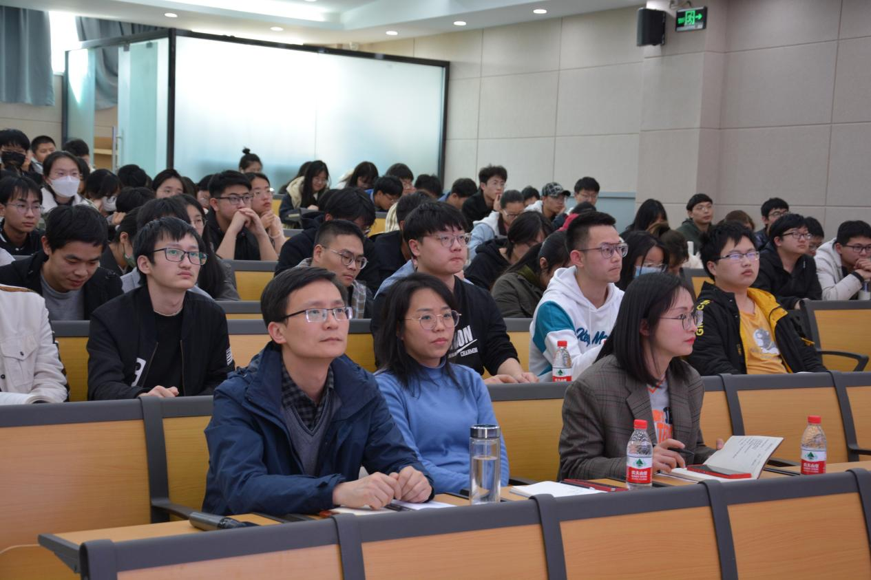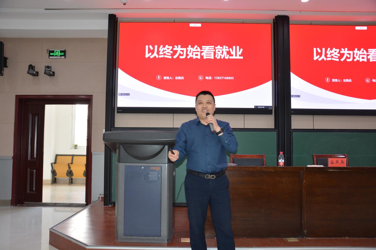 二楼南阶教室作题为《以终为始看就业》的就业指导报告。学院党委副书记赵红磊,辅导员吴苏苏、安其丰、贾丽冰及200余名本科生代表线下参加,其余学生线上参会。会议由赵红磊主持。
