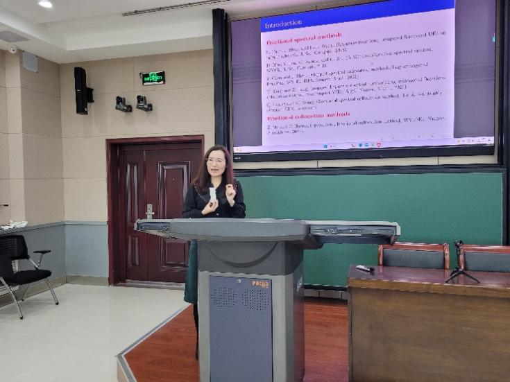 最后,北京工业大学黄秋梅教授针对弱奇异Volterra-Hammerstein方程组介绍了一种隐式的线性的Jacobi谱配置点方法。