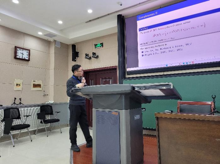 数学学科发展问题进行了充分地交流与讨论。随后12月17日上午,浙江大学冯涛教授作了题为“Finite geometry from a Kleinian viewpoint: the post CFSG era”的学术报告。