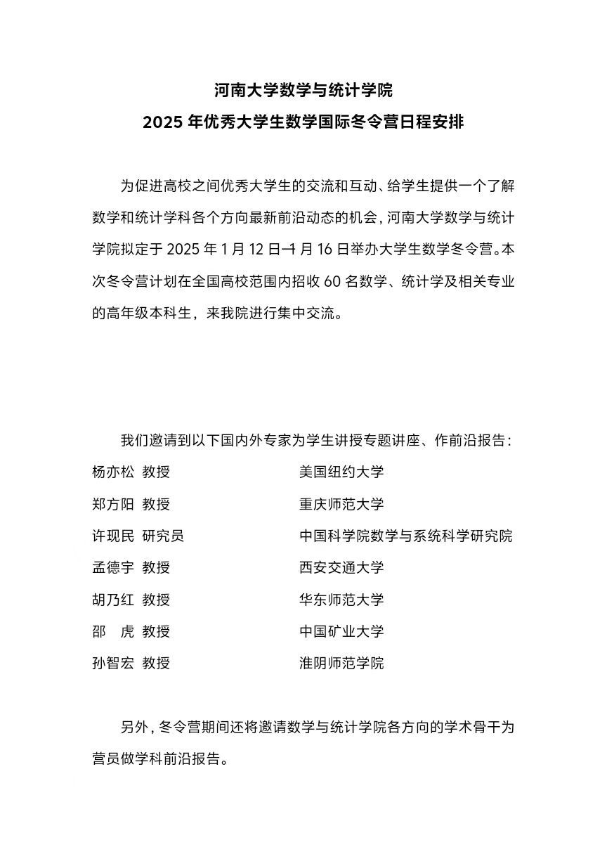 蜜桃视频 2025年优秀大学生数学国际冬令营日程安排