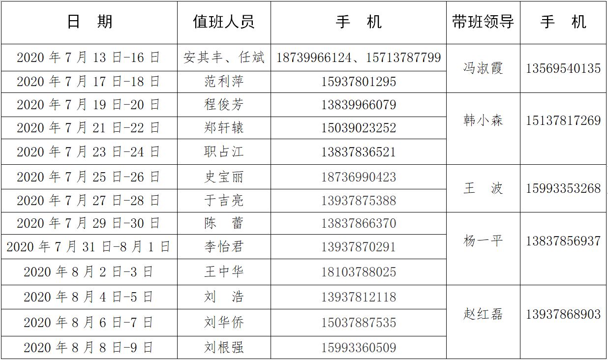 蜜桃视频 2020年暑假值班安排表