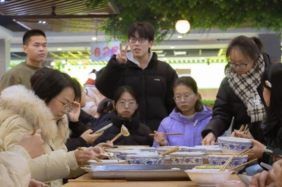 学生们在包饺子的过程中不仅展现出高效的协作能力,还不时爆发出欢笑声。