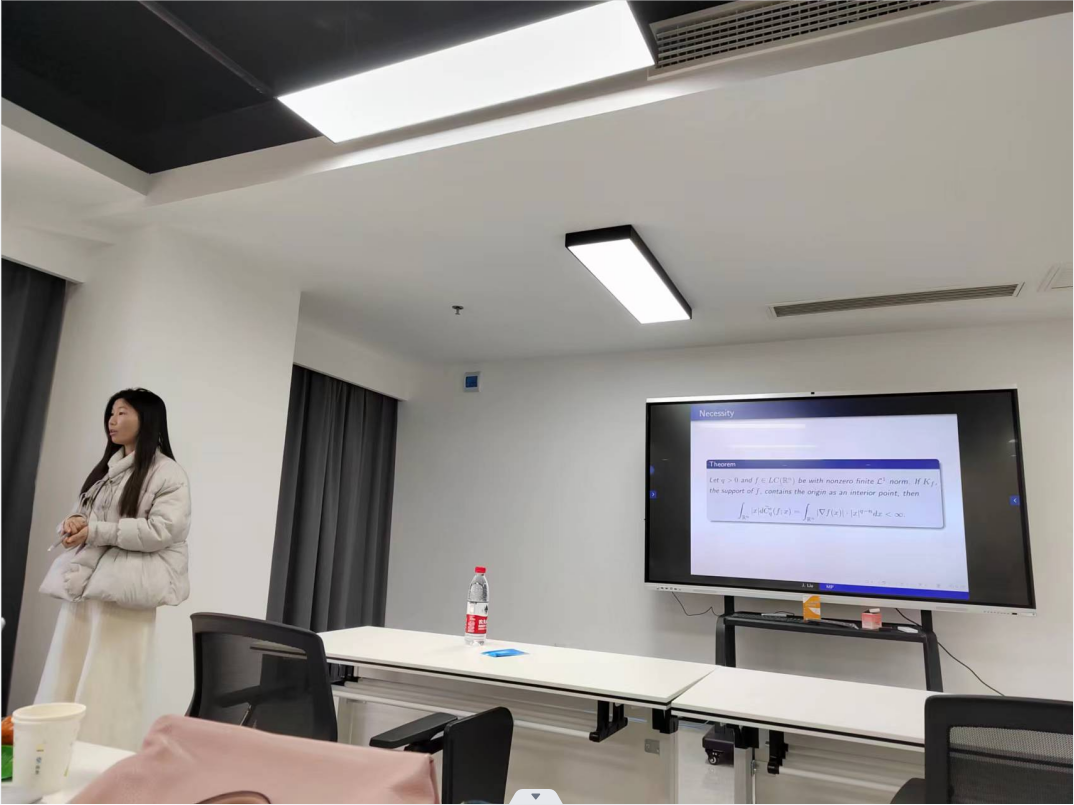 白若冰介绍了广义导数非线性薛定谔方程的波算子存在性。该问题的困难在于如何克服一阶的导数损失。一方面,通过gauge变换改变了非线性项的结构,从而获得非共振性质。另一方面,通过normal form变换,可以转移高频部分的二阶导数,克服导数损失问题。该研究可能会促进该方程的大初值散射研究,是与天津大学申佳老师合作共同完成的工作。