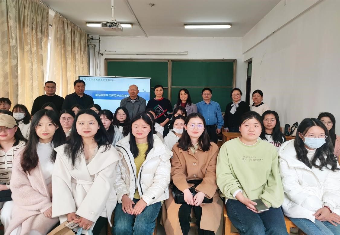 211教室举办了 “数学类师范毕业生答疑解惑”活动。此次活动由数学教育系党支部书记张玉环老师主持,邀请学院刘洪星、车秀敏、尹彦彬等七名数学教育领域专家亲临现场,为数学与应用数学本科生和学科教学(数学)研究生提供宝贵的指导。