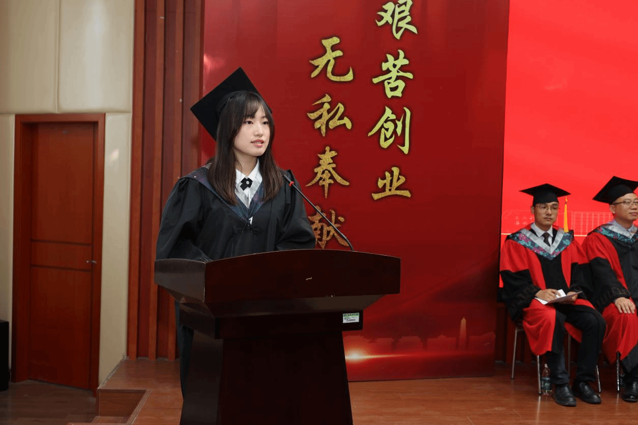 2020级统计学专业马若兰作为毕业生代表上台发言。她回忆了大学四年的点点滴滴,表达了自己对学校、学院、老师和同窗的浓浓不舍和深切感激。“重回首,去时年,揽尽风雨苦亦甜;夜阑珊,读无眠,听尽别时言”,她真诚地祝愿母校繁荣昌盛,再创辉煌;老师们顺心安康,桃李满疆;同窗们前程似锦,拥有大好未来!