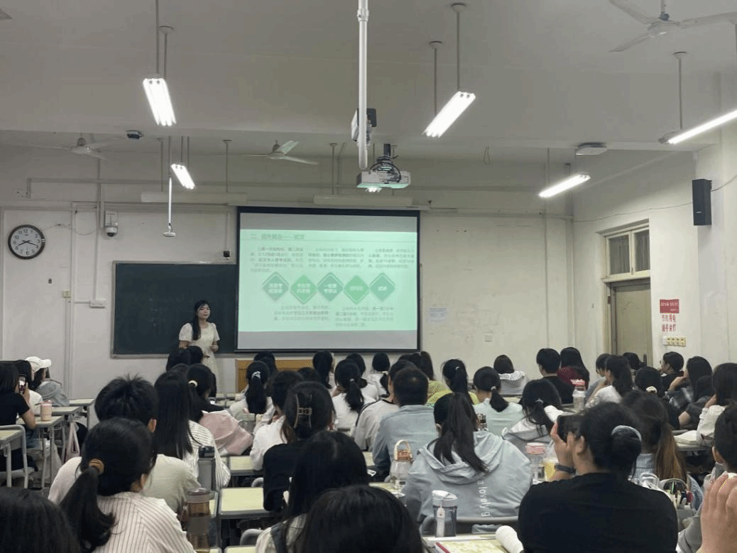 于6月7日在综合楼3408教室举办了一场主题为“智慧引领,乘风破浪”的数学教师求职经验分享交流会。本次交流会由学院数学教育方向带头人张玉环老师组织,参会人员有2021级和2022级数学与应用数学专业近百名学生。