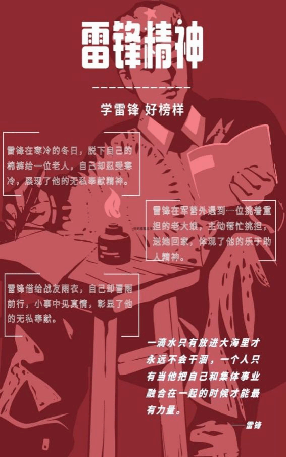 “学雷锋月”中,同学们参加学雷锋活动的热情高涨,仿佛每一颗心都在为之跳动,雷锋精神依然在社会每个角落绽放光芒。学雷锋!做先锋!愿广大青年积极行动起来、践行雷锋精神,以担当实干勇做追“锋”青年,让“志愿红”为河大增添亮丽色彩,以实际行动书写新时代的雷锋故事。