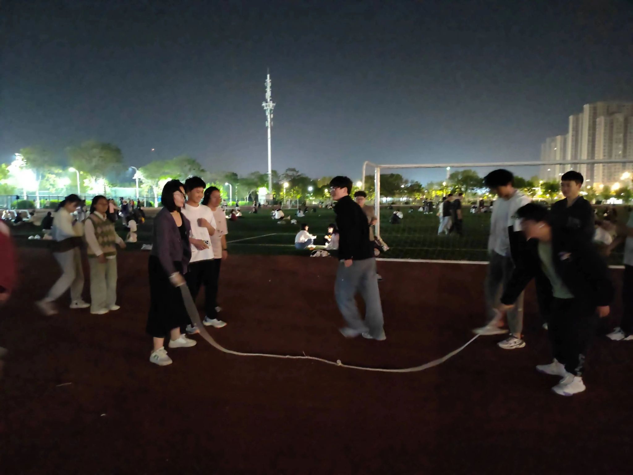 在集体跳绳项目中,同学们通过默契配合节奏感十足地跳过高高的大绳。他们一一腾空而起,有序落地,每一个动作都充满朝气和活力。