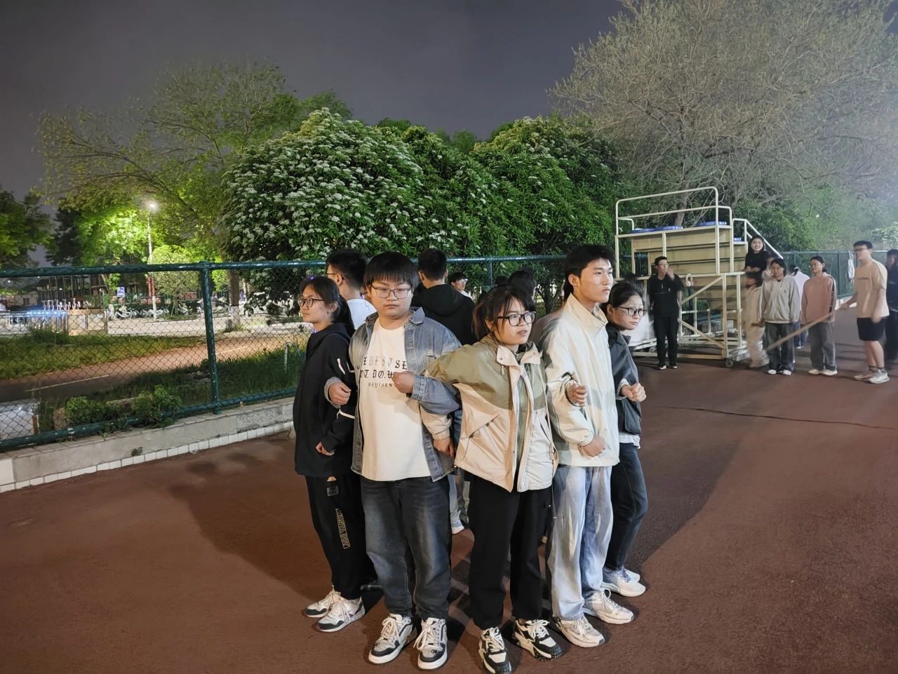 在共渡难关项目中,十位同学手挽着手,心连着心,尽管训练的过程中困难重重,但他们不畏艰难,勇敢面对任何挑战。