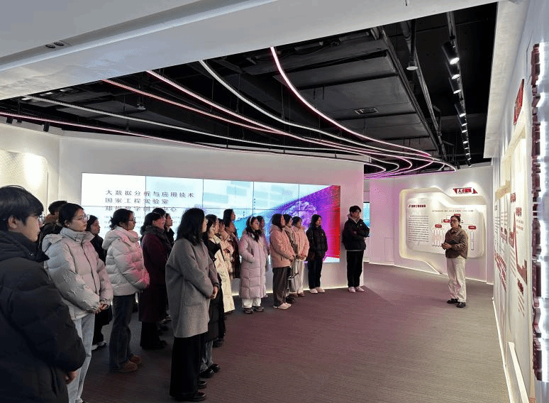 在创新中心负责人的陪同下,师生一行参观了郑州数字创新中心的数字展厅、大数据研发实验室及产业应用场景示范区。通过企业专家对“智慧城市”、“数据分析云平台”、“AI建模案例”等核心项目的讲解,同学们直观感受到统计学与数学建模在数字经济中的应用前景,进一步明确了专业学习和个人职业发展的努力方向。