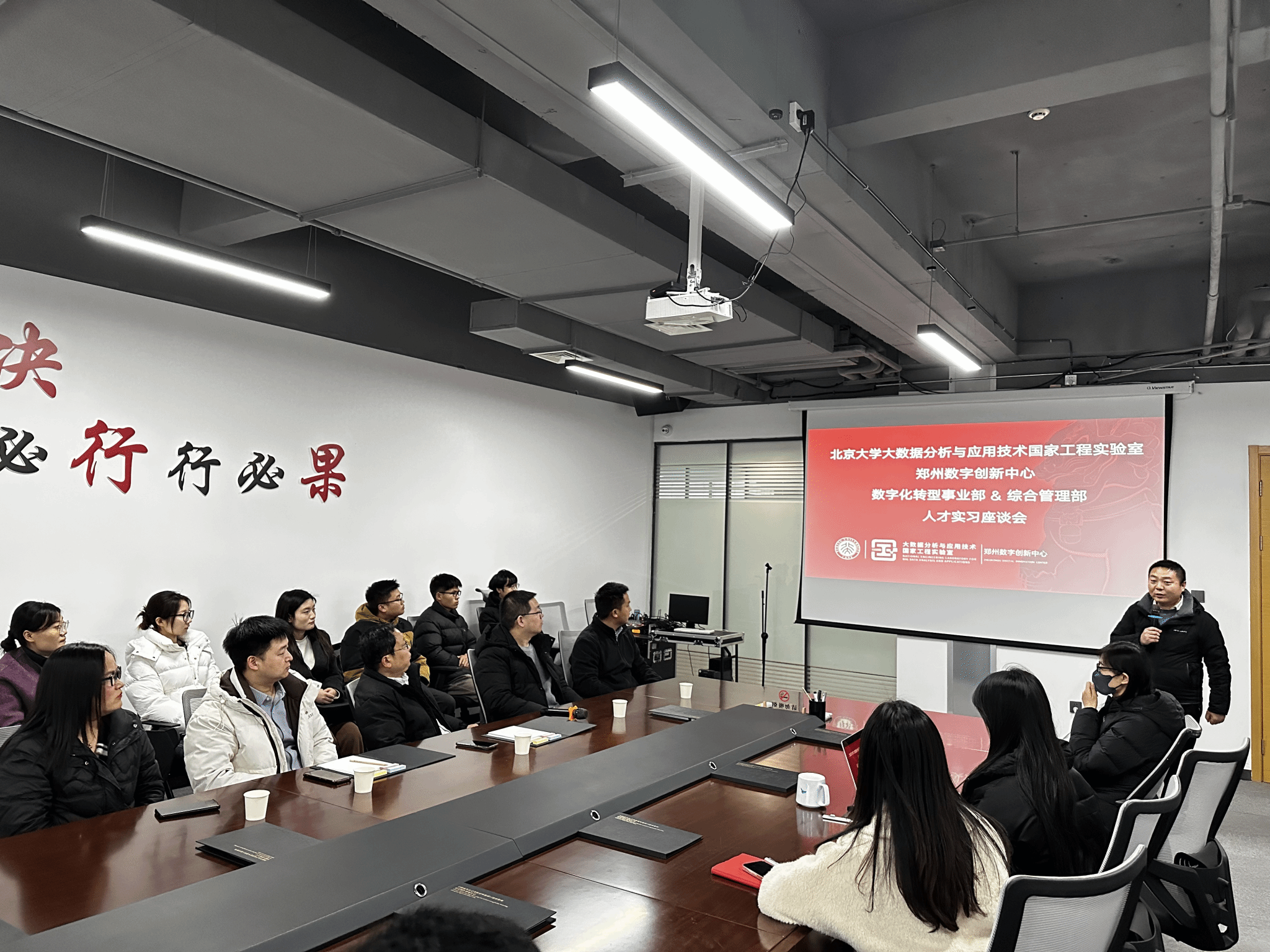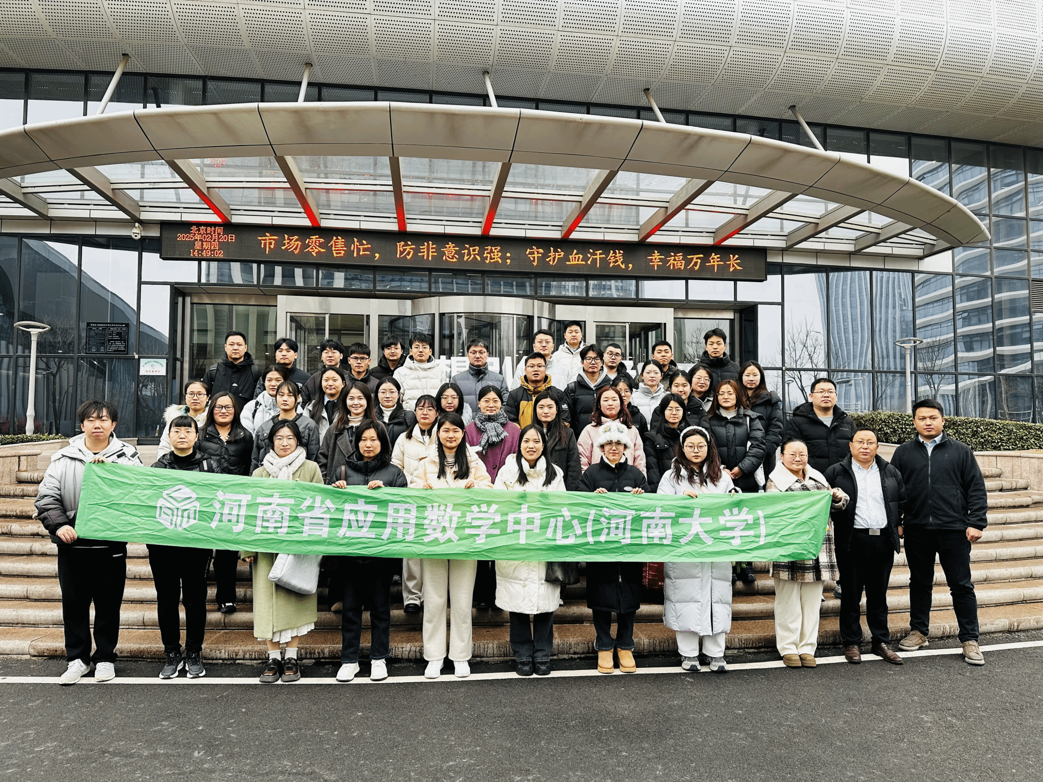 )执行主任肖运海,研究生班主任黄琼敖、李培丽,中心行政负责人贺红磊、研究生辅导员陈顺杰带领2023级应用统计专硕及中心部分研究生赴北京大学大数据分析与应用技术国家工程实验室——郑州数字创新中心开展访企拓岗和研习活动。