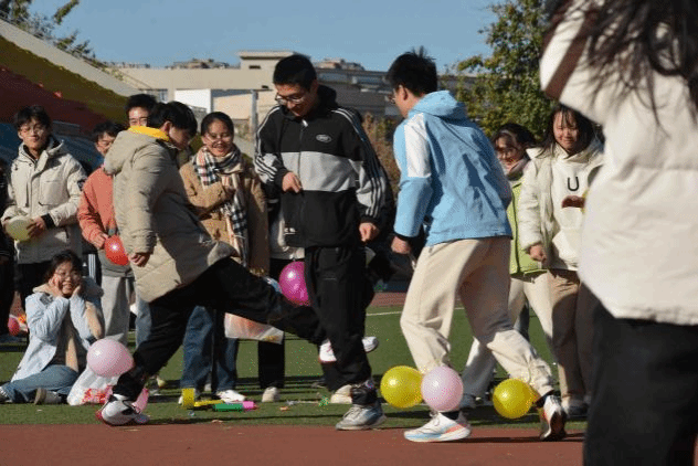 踩气球环节则充满了欢声笑语。同学们在脚踝上绑上气球,在规定的区域内进行踩气球比赛。大家你追我赶,竞相踩破对方的气球,场面热闹非凡,充分展现了同学们的活力和竞争意识。