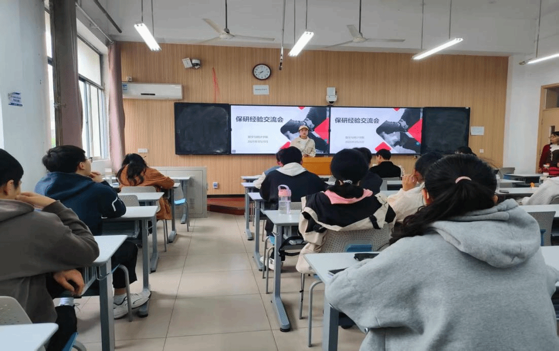 在金明综合教学楼3103教室举办保研经验交流会。会议邀请了学院副院长解俊山、2021级保研学生代表为大家传授经验、答疑解惑,2022级60余名学生参加了分享交流会,会议由2022级辅导员吴苏苏主持。
