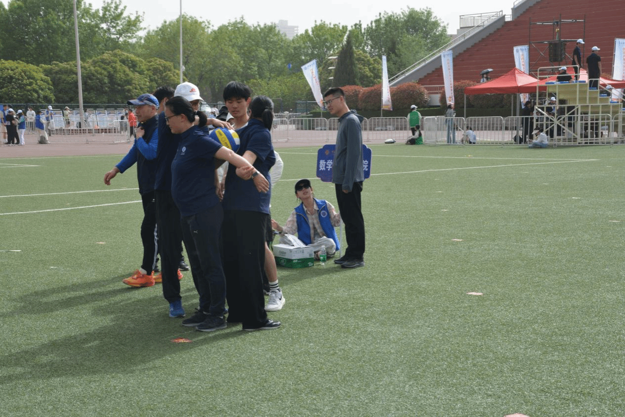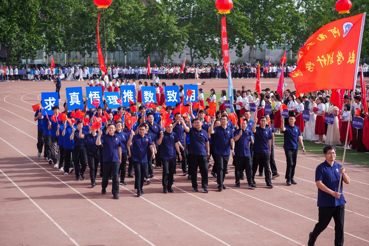 开幕式方阵中,学院代表队高举“求真悟理,推数致用”的院训格言,迈着矩阵般整齐有力的步伐,昂首阔步地走进操场,洋溢着自信与活力。