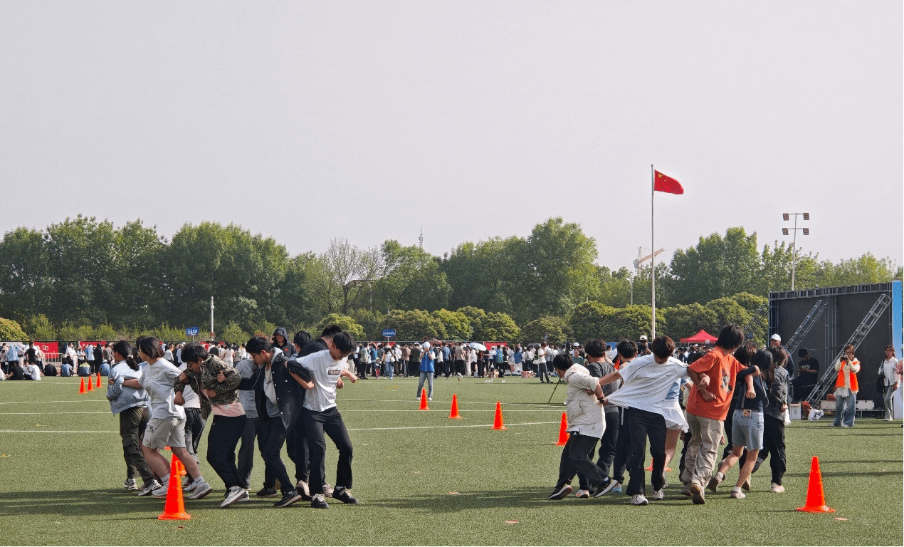 运动会中,教职工项目是本次运动会一大亮点。讲台上严谨授课的教师们,在绿茵场上配合默契,拼尽全力,不仅为运动会增添了欢乐与活力,同时也展现出他们积极向上的精神风貌,成为赛场一道上独特的风景线。比赛中,学院教师们以沉着专注诠释默契配合,在投壶场上精准制胜,在双人背夹球接力默契无间,在旱地龙舟步调铿锵,在飞盘九宫格精准破局,在四人五足跑并肩同行,用团结为赛道镌刻拼搏印记。在集体拔河赛场上,学院教师们更是力撼群雄,以众志成城的信念紧握长绳,逆势突破斩获全校第三,用汗水与呐喊书写热血荣光!