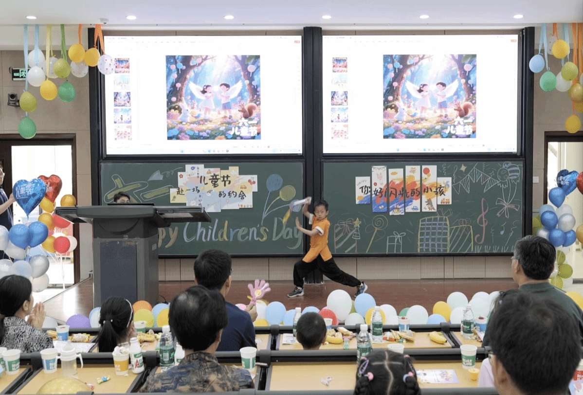 活动在古筝独奏《茉莉花》中拉开了序幕。接着,歌曲、舞蹈、朗诵、武术、说唱、乐器弹唱等节目精彩上演。孩子们在舞台上尽情展示着自己的才艺,展现出自信与活力,赢来了一阵又一阵的喝彩声,也为这个特别的节日增添了更多欢乐与惊喜。在“正话反说”、“数字宝藏”、“成语接龙”的趣味游戏中,小朋友们积极参与其中,现场气氛不断被点燃。