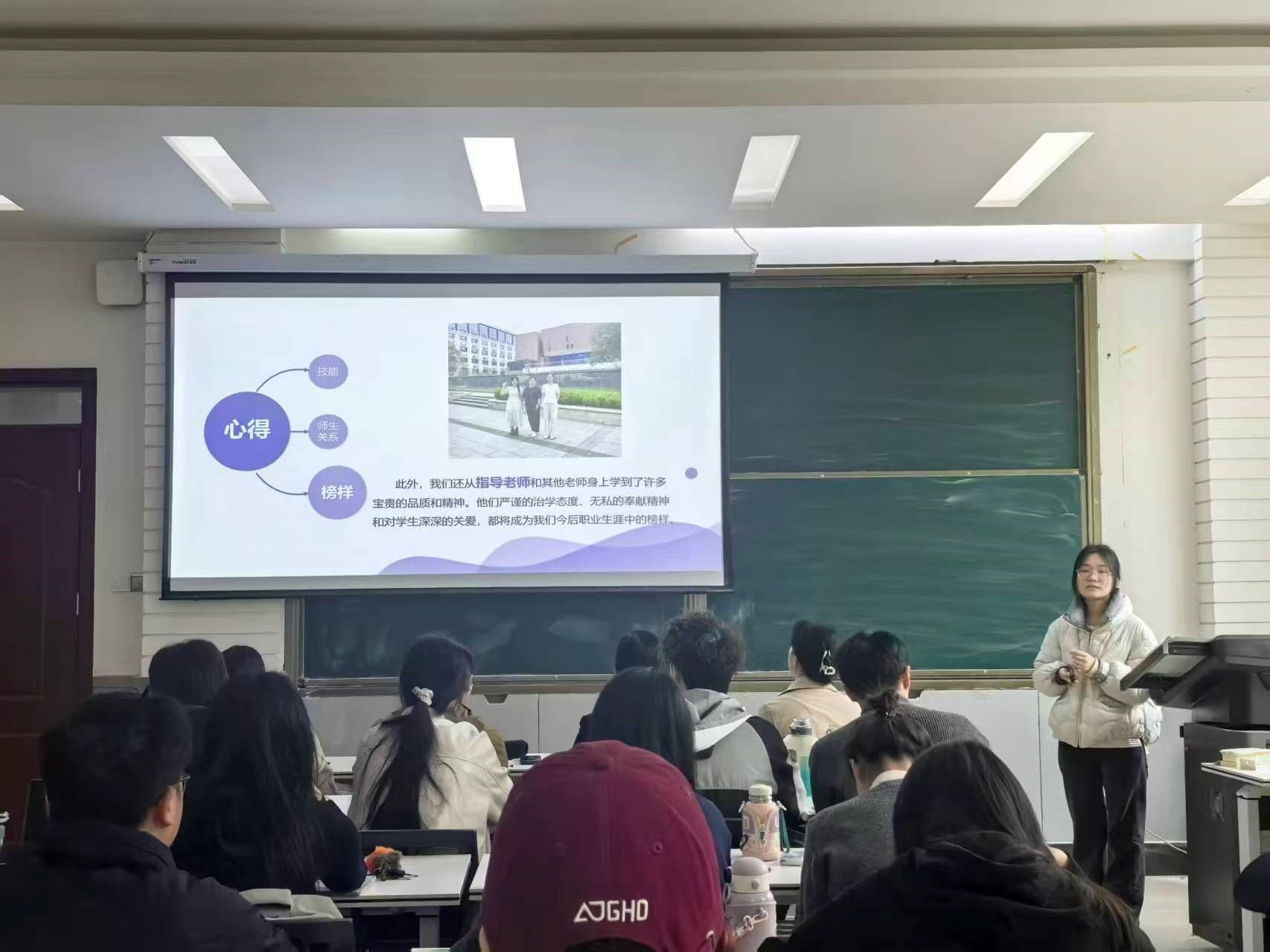 结束专业实习的十组同学结合自身实习经历,从教研实践、班级管理、专业技能提升等维度进行了汇报。同学们讲到,通过打磨教学设计、录制授课视频并与指导老师共同研究分析,课堂语言表达、板书设计和时间把控能力得到了显著提升;通过观摩优秀教师公开课,学到了实用的课堂管理与教学技巧;通过参与“项目式学习展示课”,对“以学生为中心”的教学理念有了更真切的实践感悟。大家普遍认为,教育实习经历让自己深刻体会到“教育不仅是教书更是育人”,对教师职业的责任感与使命感有了全新的认识。