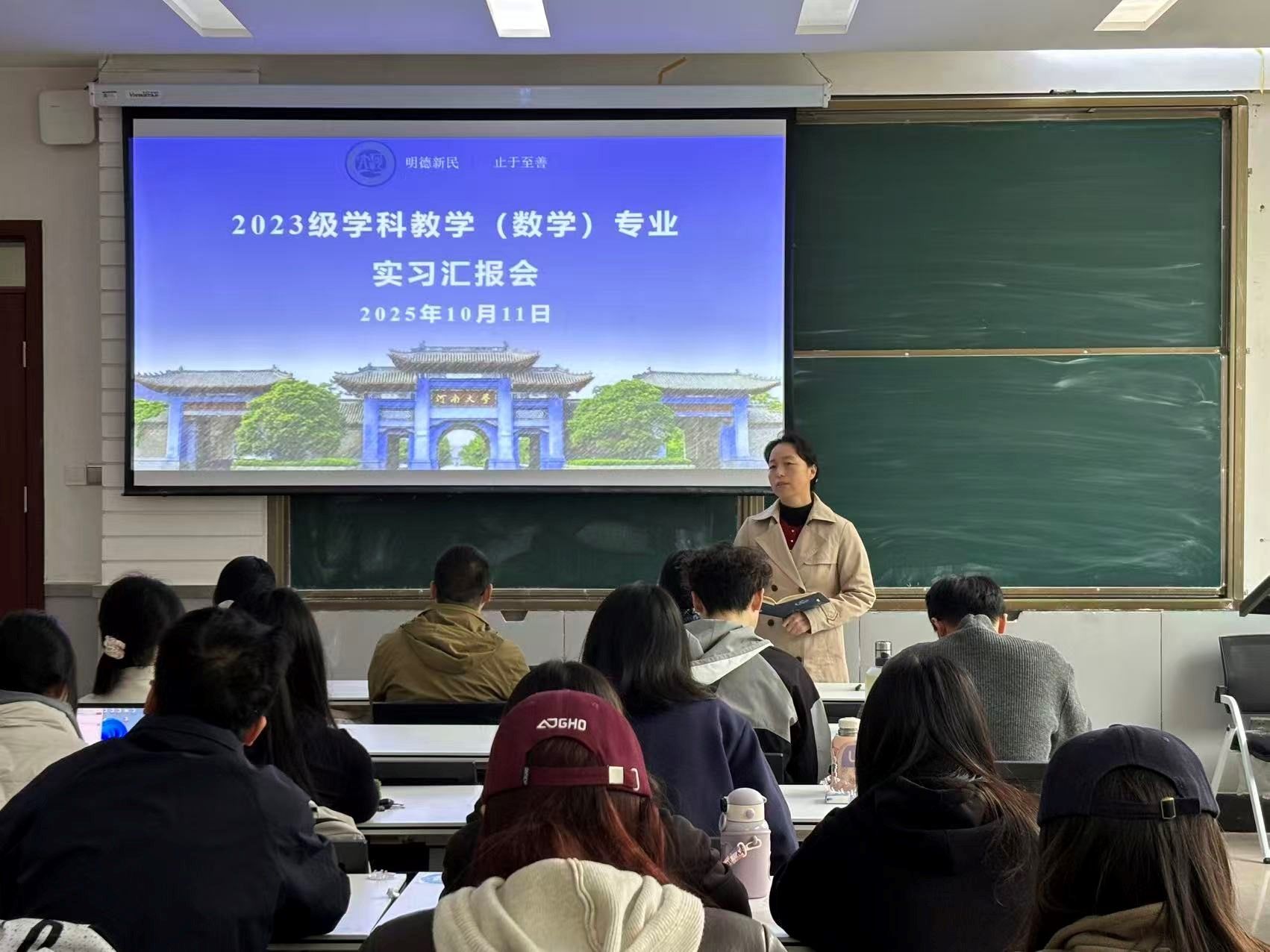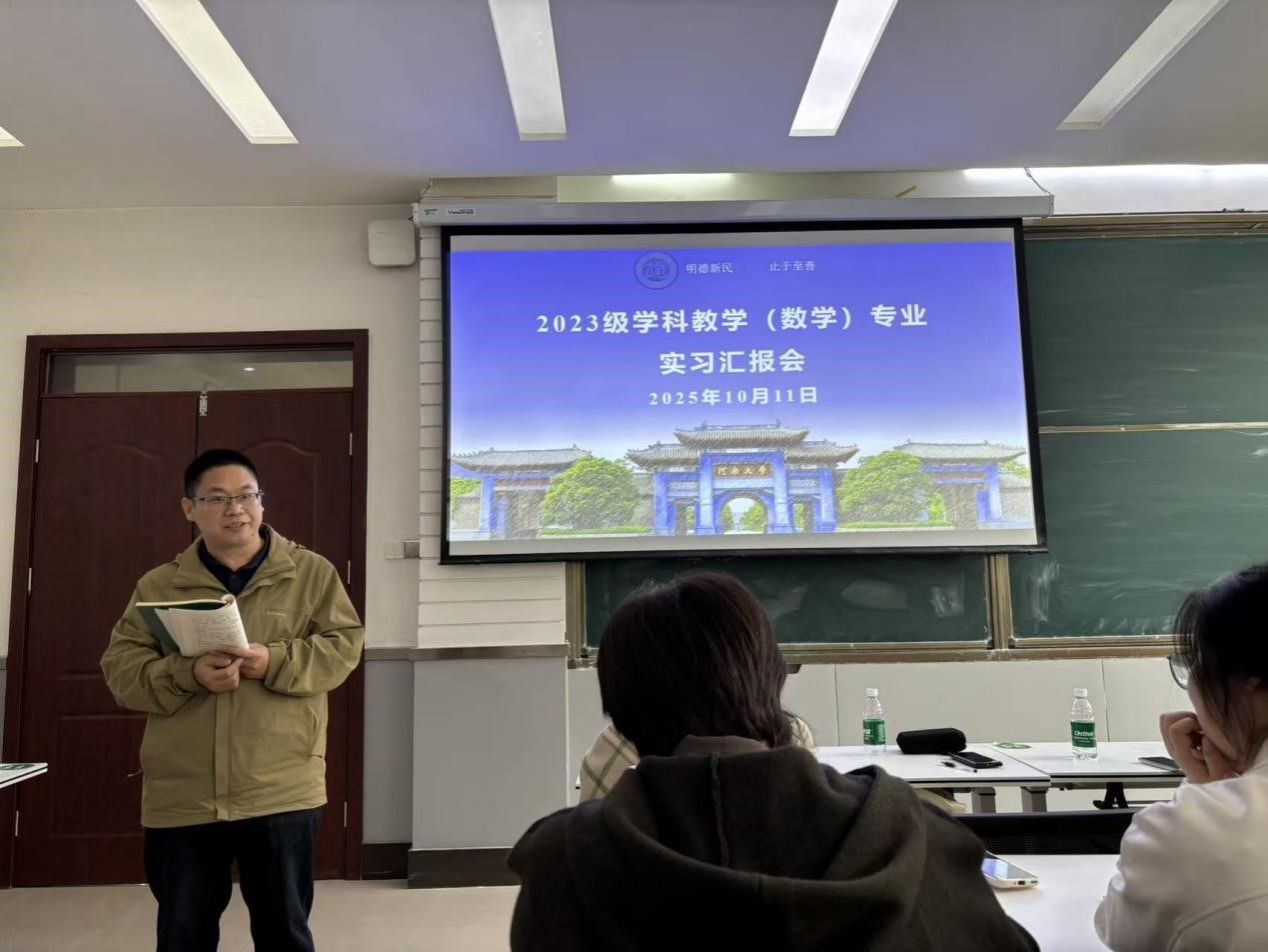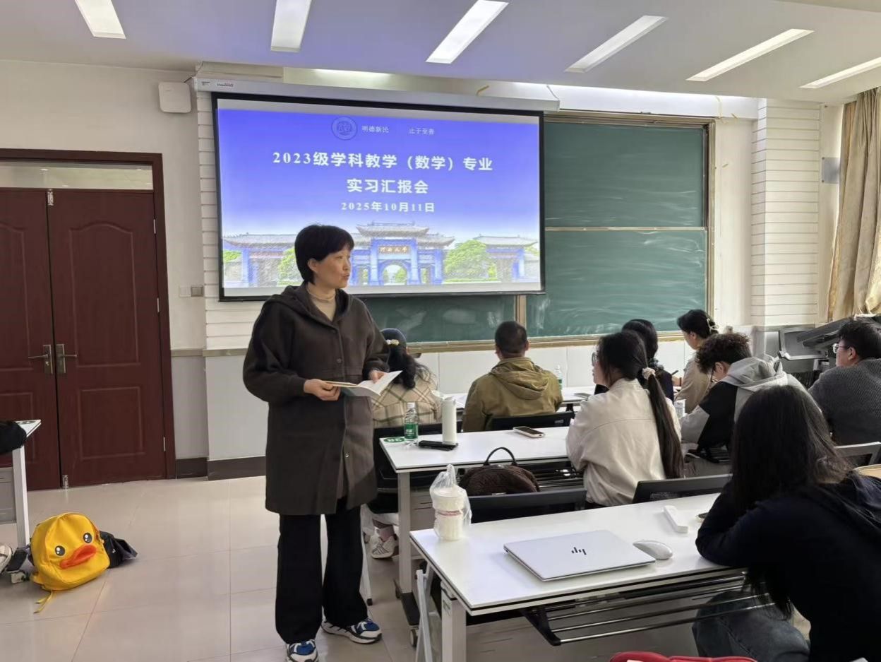 2023级学科教学(数学)专业实习汇报会在学院一楼报告厅举行。校教师中心副主任、学科教学导师王波,学院学业导师尹彦彬、汪叶、范利萍,在校学科教学专业硕士参加了汇报会。汇报会由数学教育方向带头人张玉环主持。