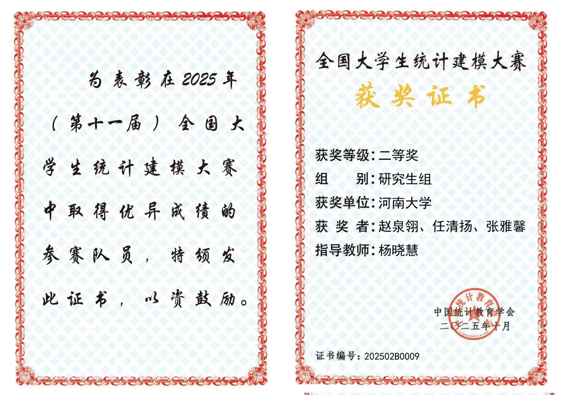 两支研究生团队凭借扎实的学术功底与创新应用能力,双双获奖。《助力“健康中国2030”战略——面向脑部疾病诊断的多模态脑影像智能融合研究》表现突出,在全国总决赛中荣获河南省唯一的国家二等奖;《红斑鳞状皮肤病智能辅助诊断——基于多模态数据与MedViT方法》荣获国家三等奖。