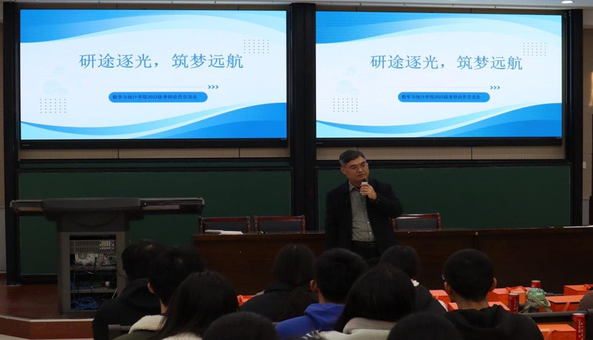 在南阶教室召开“研途逐光,筑梦远航”2022级考研冲刺动员交流会。院党委书记曹志伟、院长韩小森、副院长杨一平,教师代表王琪、韩喆及2022级辅导员吴苏苏出席活动,为百余名考研学子送上冲刺鼓励与美好祝愿。动员交流会由吴苏苏主持。