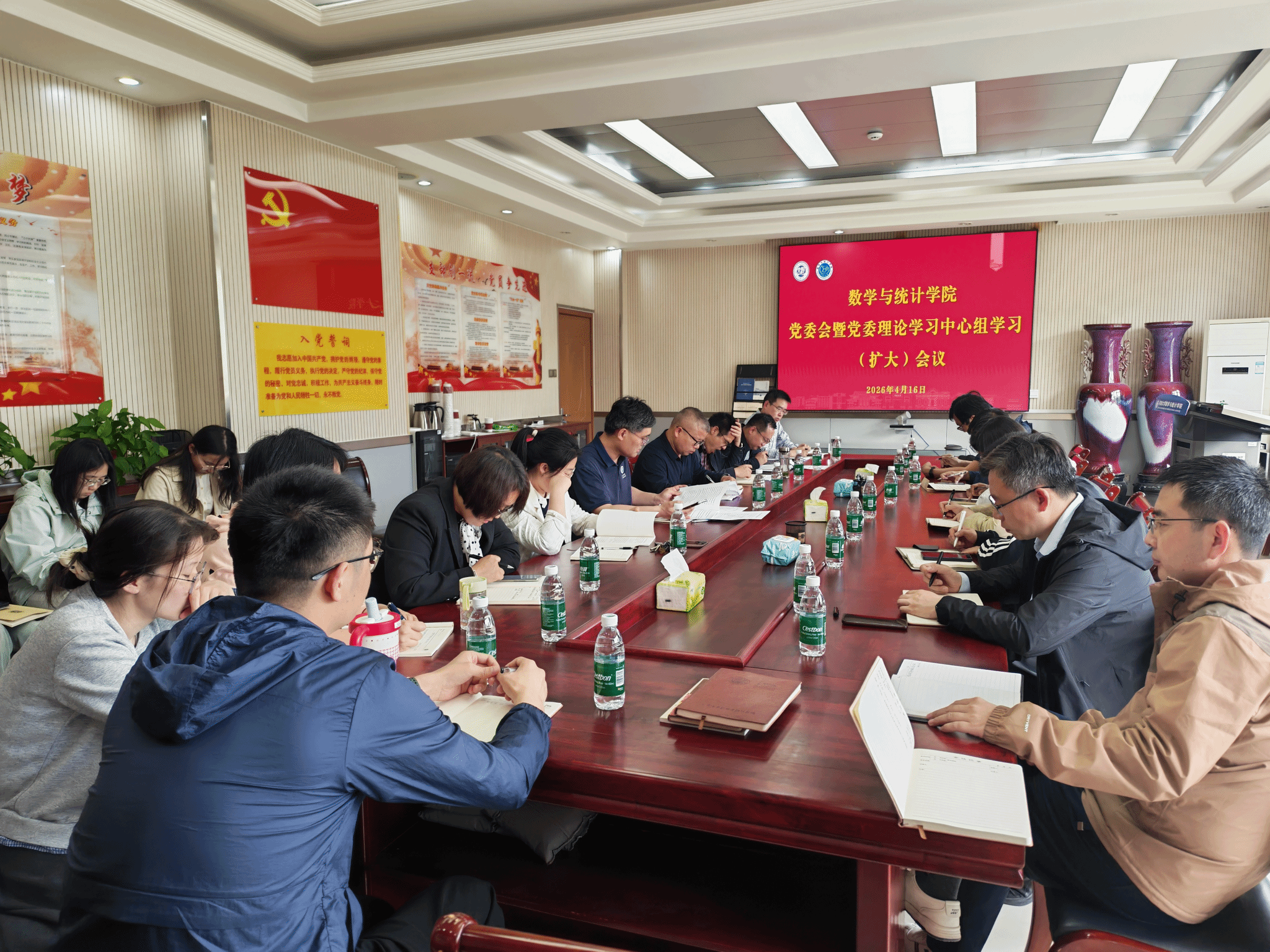 2026年4月16日下午,学院召开党委会暨党委理论学习中心组学习(扩大)会议,党委委员、领导班子、系主任和党支部书记参会,聚焦理论学习、工作部署与研讨交流,推动各项工作落地见效。