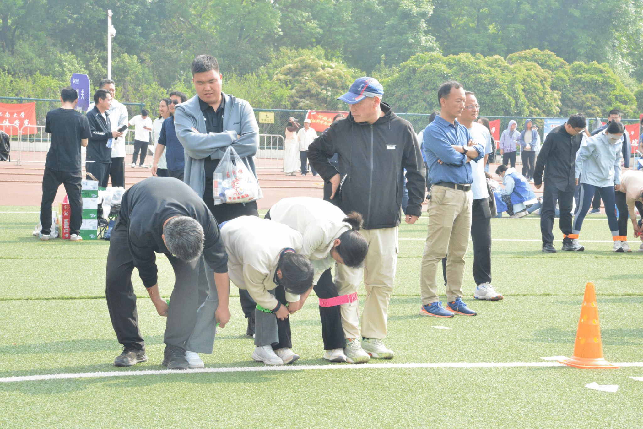 三条绳带,将四个人牢牢绑定在一起。此刻,我们不仅是办公室里志同道合的伙伴,更是竞技场上肩并肩的战友,一步一个脚印,向终点奔赴。