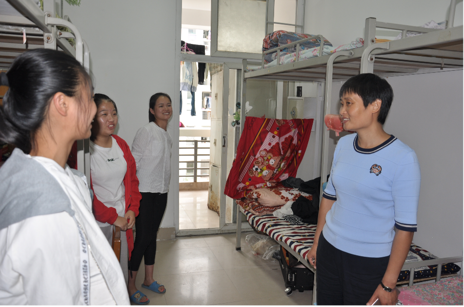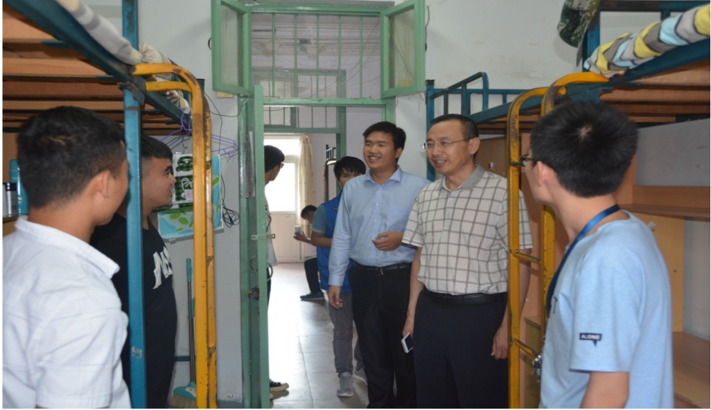在宿舍里,学院领导与新生进行了亲切的交谈,仔细询问了他们的住宿状况和新学期规划。学院领导重点强调了安全问题,希望同学们要提高安全防范意识,不要轻易相信推销人员,以免上当受骗。王友成书记、冯淑霞院长还嘱咐同学之间一定要互帮互助、和谐相处。