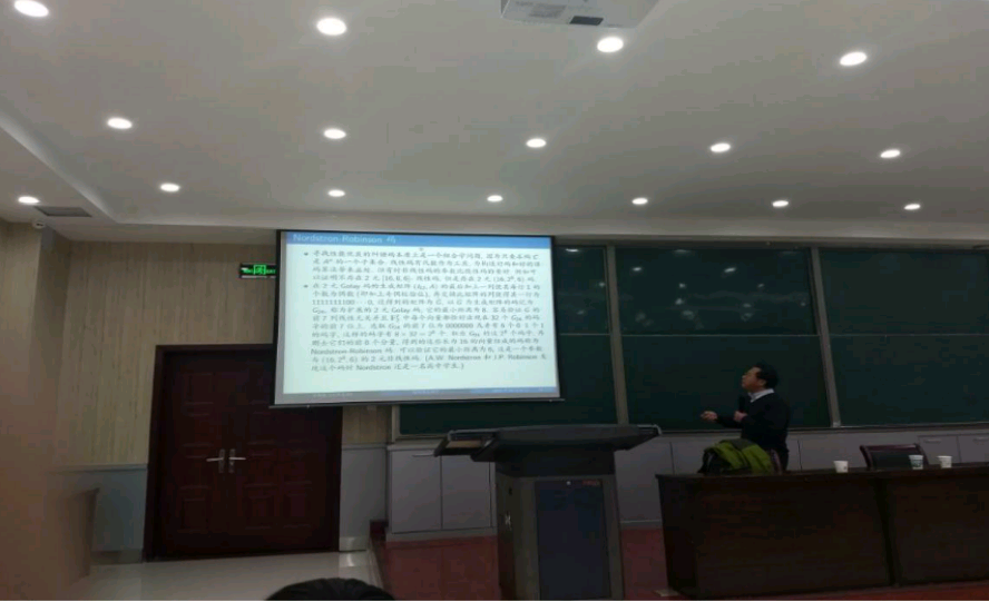 冯荣权教授从“纠错编码”、“密码”两个方面阐释“编码理论”并围绕其数学模型展开报告。其中,冯教授谈及“通讯和纠错”时指出多样化的信息可以通过物理手段编成有限的离散的脉冲信号,纠正错误的基本想法是把原始信息向量重新进行纠错编码,以降低效率来达到纠错的目的。教授就“纠错译码”展开论述时,提出可以将有纠错能力的通讯系统数学模型化,并谈到极小距离译码准则,即最小距离越大,纠错能力便越强。冯教授认为“纠错码和纠错译码应当在工程上容易实现”,若在正确率和效率上取得双赢,需要 “构造好的纠错码”及“要有可以实用的纠错译码算法”,随后教授利用 “线性码”、“Nordstron-Robinson码”等码详细地向学生讲解编码。冯荣权教授从“密码”角度,在“保密通信”、“公钥加密体制”等方面展示编码理论在加密上的应用。报告最后,冯淑霞总结说,很多理论归根结底都是以数学为基础,希望通过听此类报告激发同学们对数学的兴趣和热情。