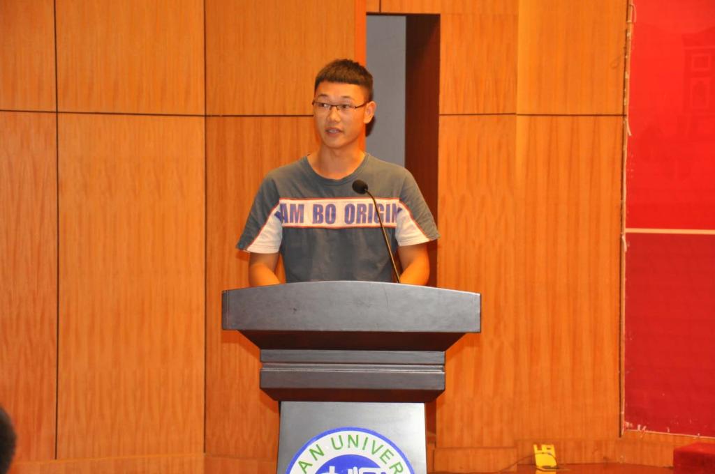 在校生代表2016级学生会主席杨彬以学长的身份向“小18”们传授了数学学习和集体生活的经验并表达了美好的祝愿。