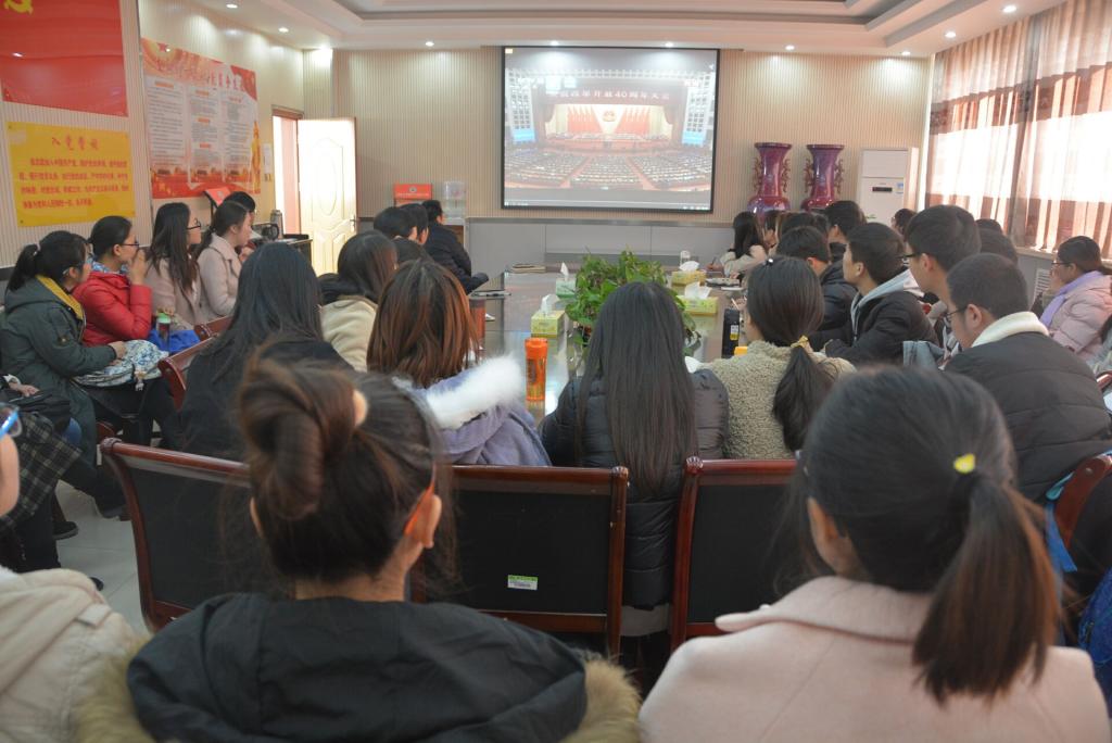 党委组织学院干部师生代表共计60余人,在学院二楼会议室集体收看中央电视台“庆祝改革开放40周年大会”现场直播。学院党委书记史富强,党委副书记、院长冯淑霞,党委副书记赵红磊,副院长杨一平和各党支部书记参加了本次活动。