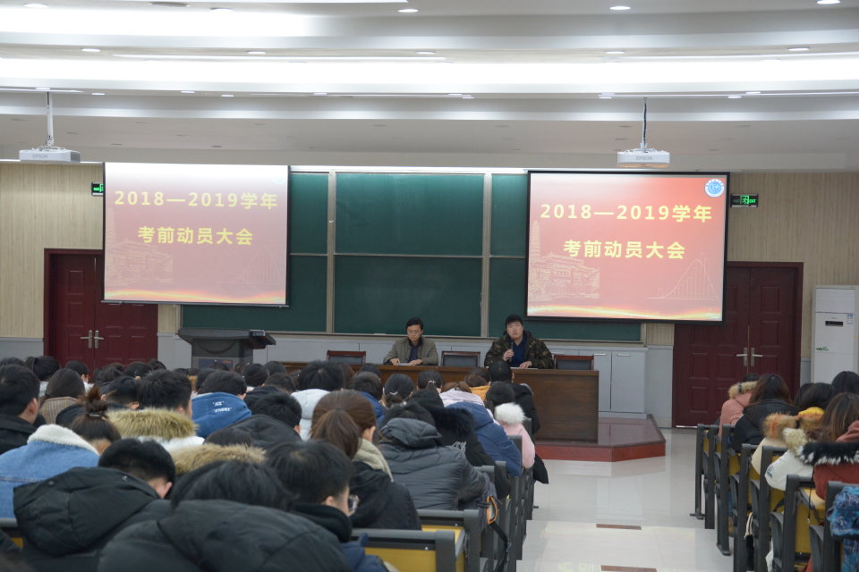 为进一步加强学风建设,严肃学院考风考纪,营造文明、诚信考试的良好氛围,构建诚信校园,2018年12月28日-2019年1月4日,我院各年级分批召开2018-2019学年第一学期期末考试考前动员大会。院党委副书记赵红磊,各年级辅导员出席动员会。