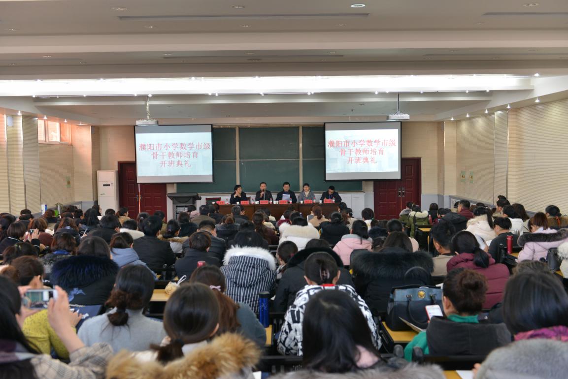 在学院二楼北阶教室举行了“濮阳市小学数学骨干教师培育项目”开班典礼,标志着2019年度我校濮阳市梯级教师培训工作全面展开。濮阳市教育局副局长乔明福,师训科科长王章喜,我校远程与继续教育学院院长徐书耀,蜜桃视频
