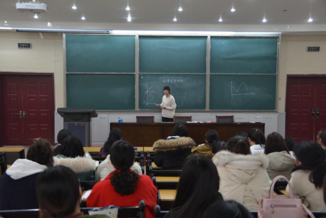讲座上,张玉环细致准确地讲解了教师招聘对专业技能、简历的制作以及笔试面试技巧要求等问题。紧接着,讲座采取学生试讲, 同学讨论,老师给出指导性意见的形式进行。2015级本科生韩莹和侯宜吟分别试讲了《等比数列的前n项和》和《函数的单调性》的内容。