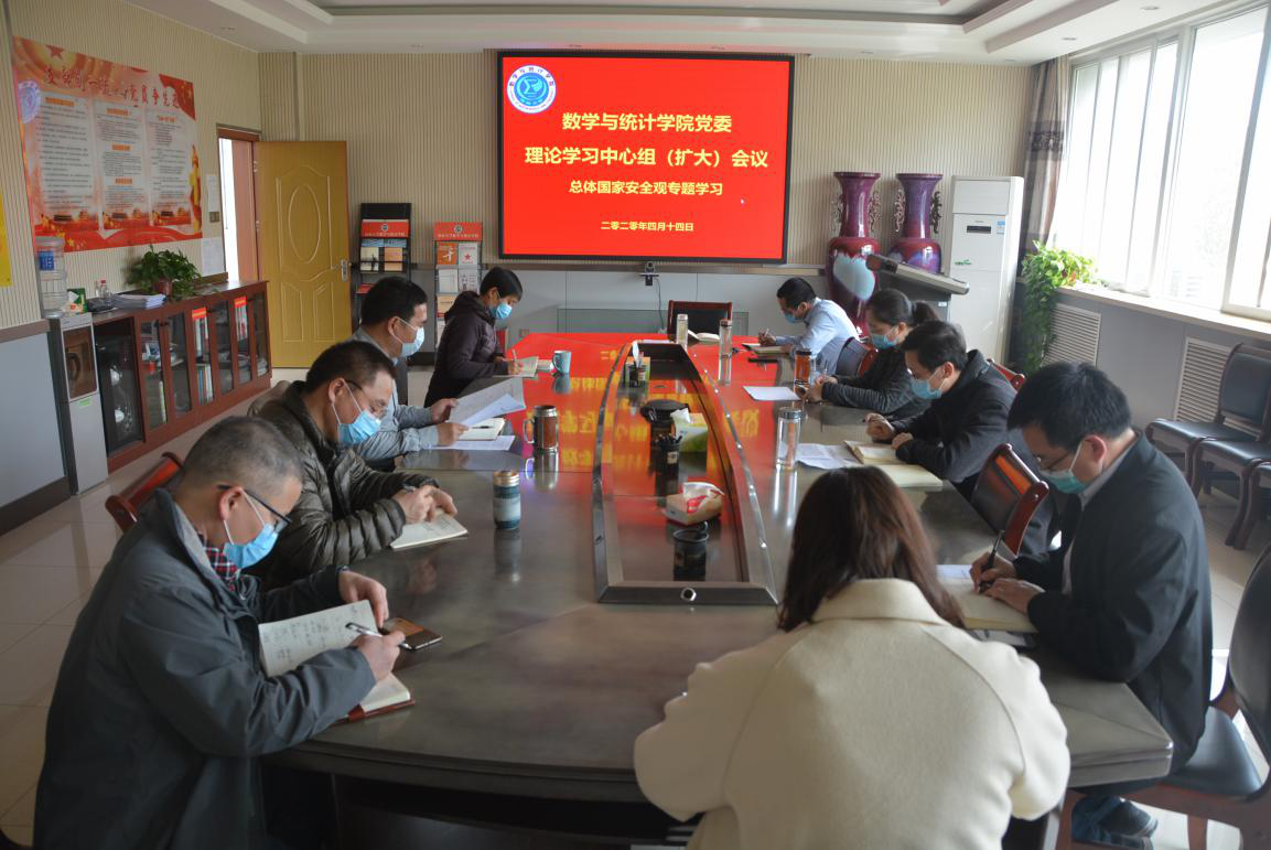 党委在二楼党建活动室召开理论学习中心组扩大会议,专题学习习近平总书记关于总体国家安全观的重要论述。学院全体处级领导干部、党委委员参加会议。会议由院党委书记史富强主持。