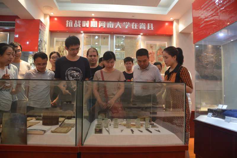 在嵩县,一行人先后到嵩县红色革命历史文物展览馆和财神庙医学院办学旧址参观考察。展览馆中陈列着革命时期的一些历史文物和我校在嵩县办学的一些有纪念价值的物品,而财神庙作为河大当年在嵩县坚持开展医学教育的见证者,越来越受到当地政府和人民群众的重视和保护。一座座抗战办学遗址遗迹,一张张敌前办学老照片,蕴含着蜜桃视频