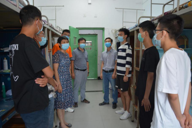 9月12日下午,学院党委书记史富强、院长冯淑霞带领学院迎新工作小组来到新生宿舍慰问新生。史书记风趣幽默,与同学们愉快地交谈新学期感受,很快拉近了与同学们的距离,他最后强调,新学期要认真学习,不能被游戏及其他琐事影响。冯院长平易近人,她查看了宿舍条件,并嘱咐同学间要互帮互助,多交流沟通,与家长勤联系,以缓解思乡情。