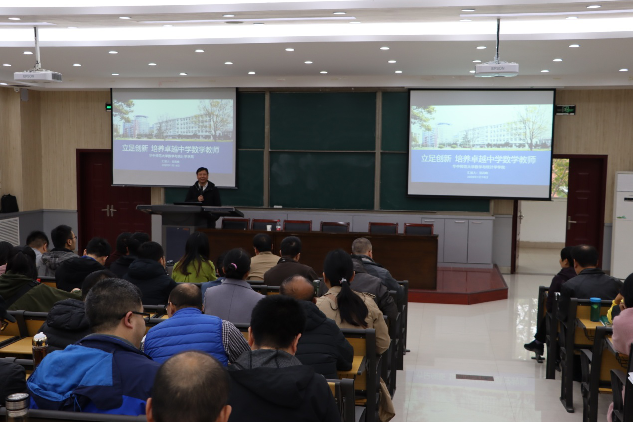 副院长郑高峰教授在学院二楼第一阶梯教室做了一场《数学与应用数学师范专业第三级认证工作交流》的专题报告。学院领导班子成员,数学系、应用数学系和数学教育系全体教师,学院教务办全体成员,各年级辅导员老师、师范专业本科主要学生干部及教育硕士等100余人参加了报告会。