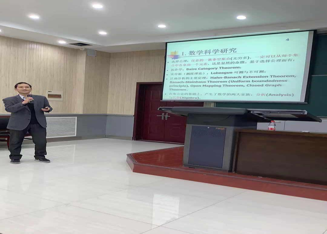 院长李功胜教授于我院南阶梯教室作题为《数学物理反问题漫谈》的报告,学院部分老师、研究生及150余名本科生参加此次报告会。
