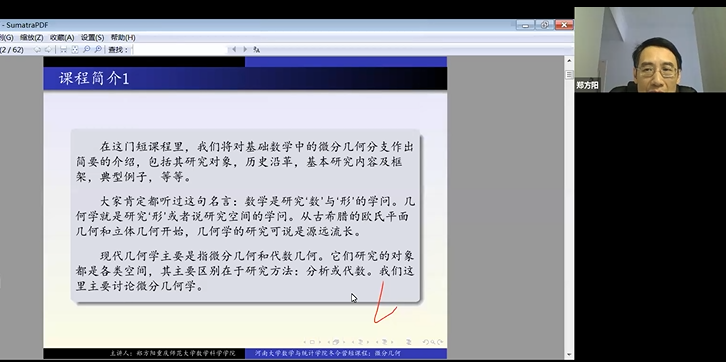 郑方阳教授讲授《微分几何》